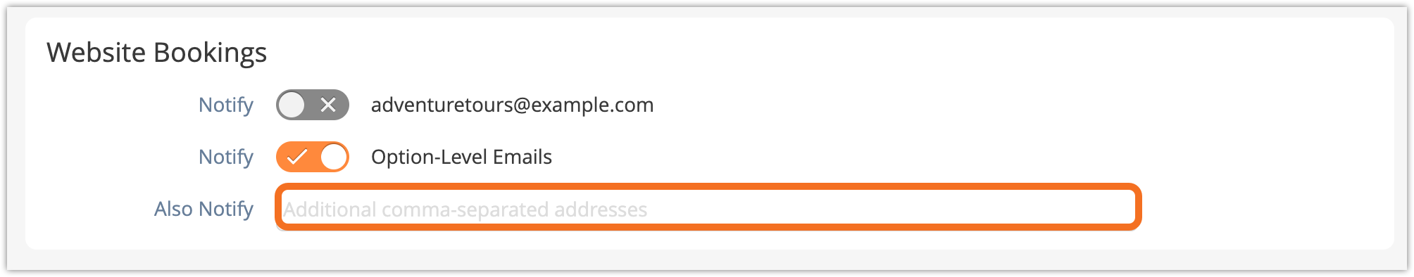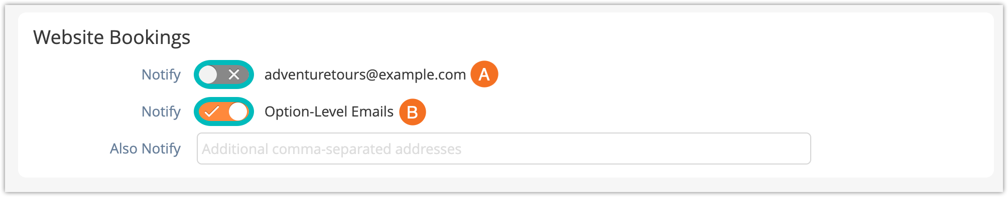 Front-end and point-of-sale booking alerts will be sent to recipients set at the option level, too.