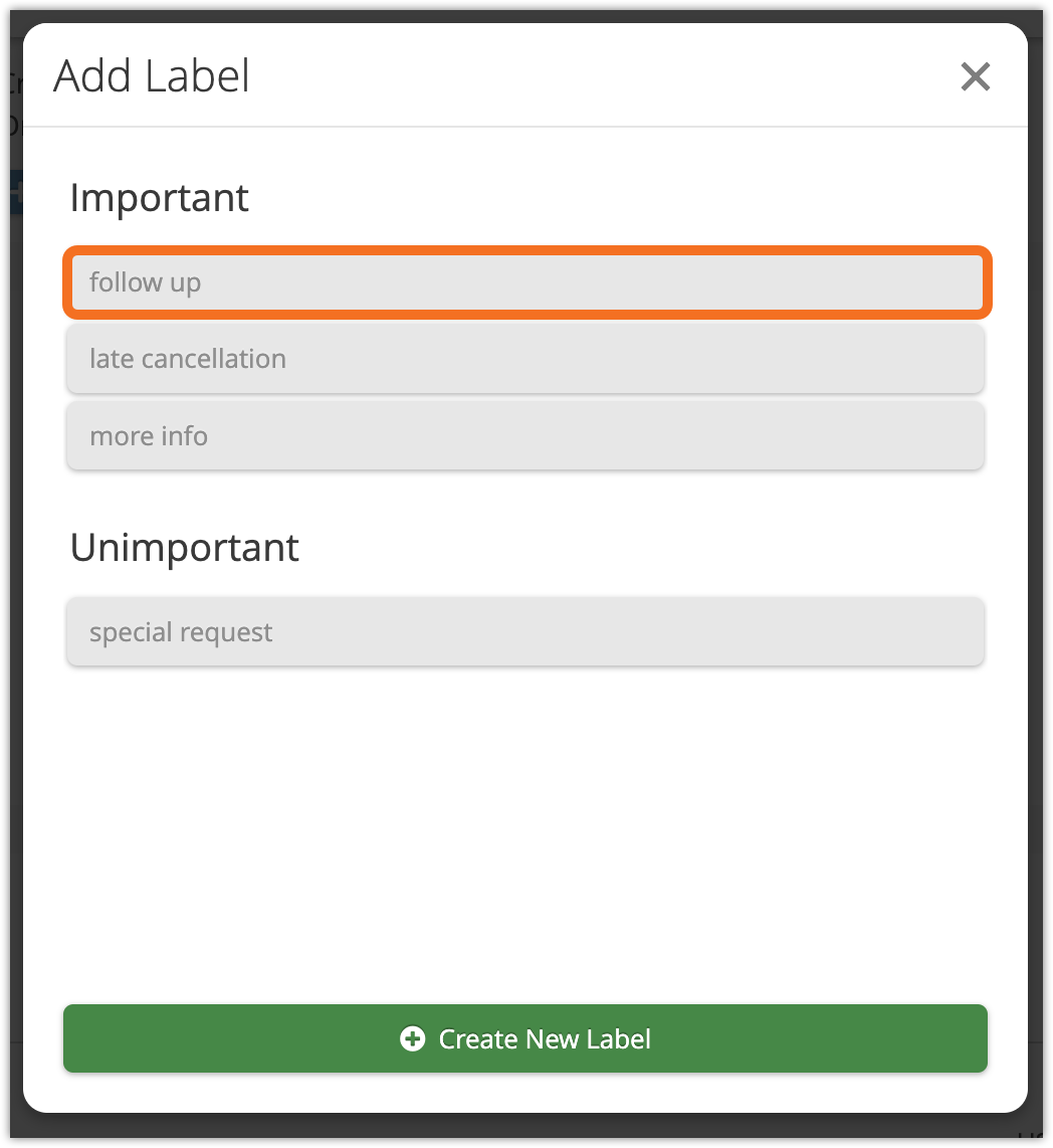 2. Click the label you want to use. This will add the label to the booking’s labels, which you can see below the booking’s details.