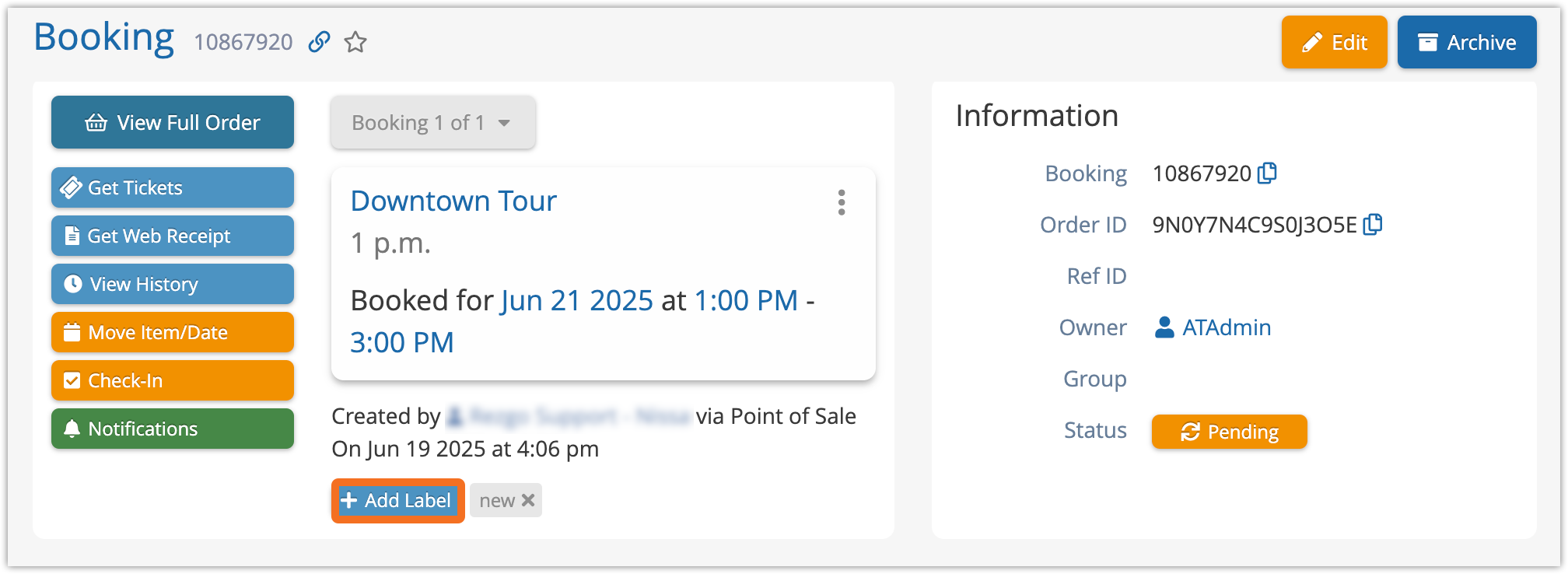You can add labels to bookings to make them easier to find in the future. These labels, which work similarly to inventory tags, can be used to indicate anything about the bookings.