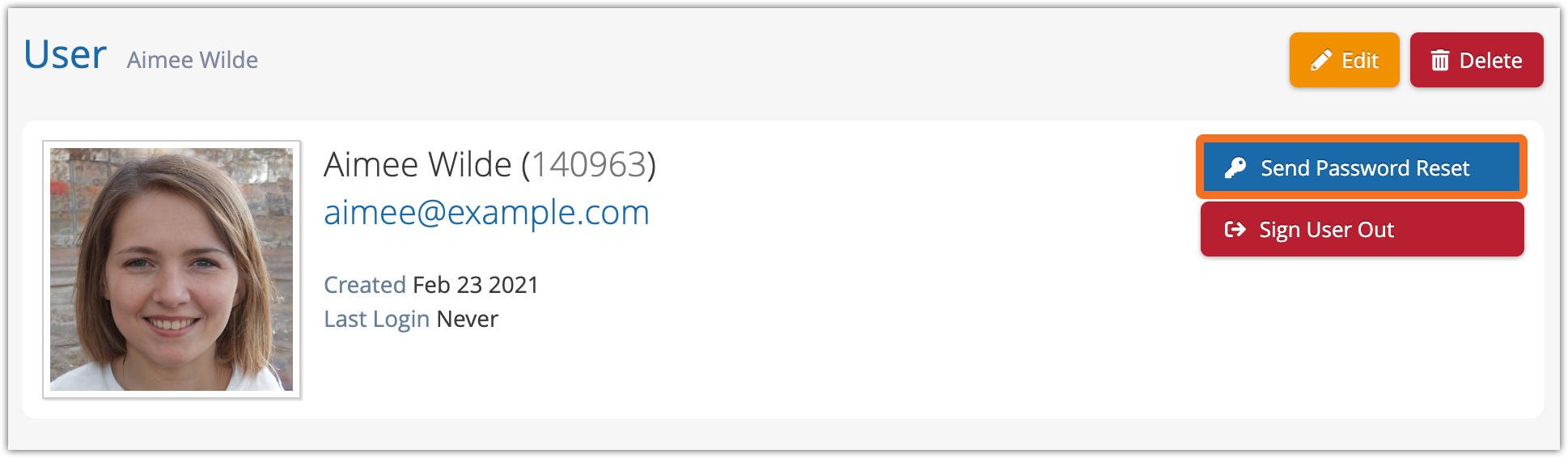 3. Click Send Password Reset.
