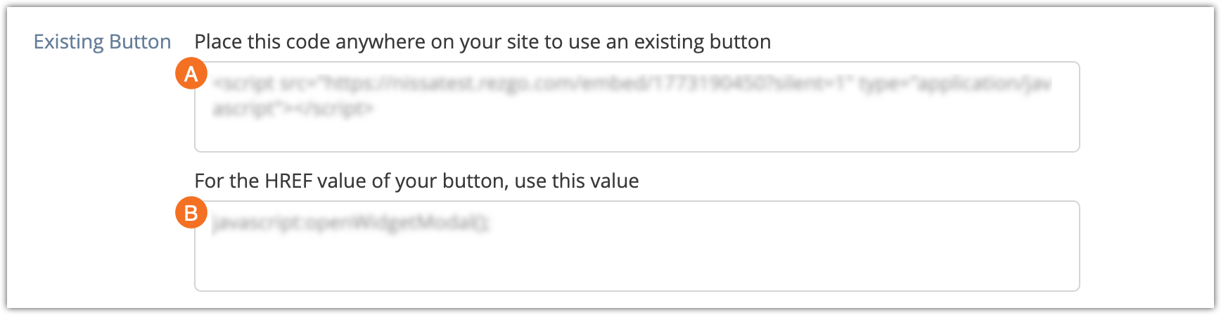If you’d rather link an existing button to your widget, you can do that too. First, you need to copy the text in the top box (A) onto a blank line in your website’s code.