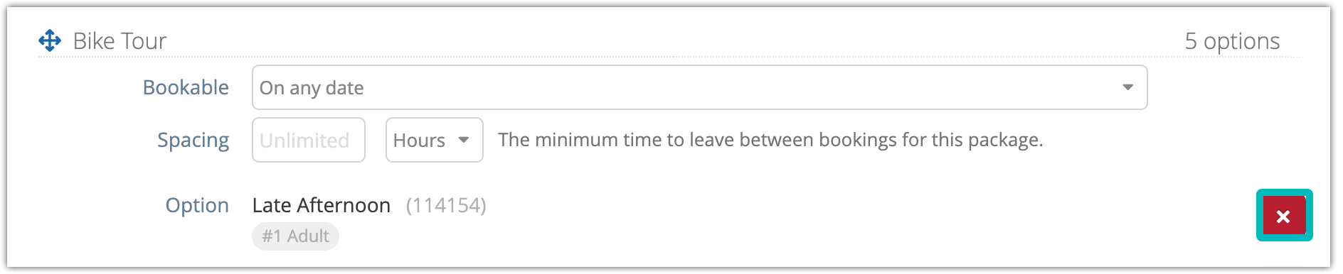 If you leave this field blank, customers will be able to book an option that begins months after the first option’s date. - In the Spacing field, you can enter the minimum number of hours (or days) between the previous option’s booking and this option’s booking.