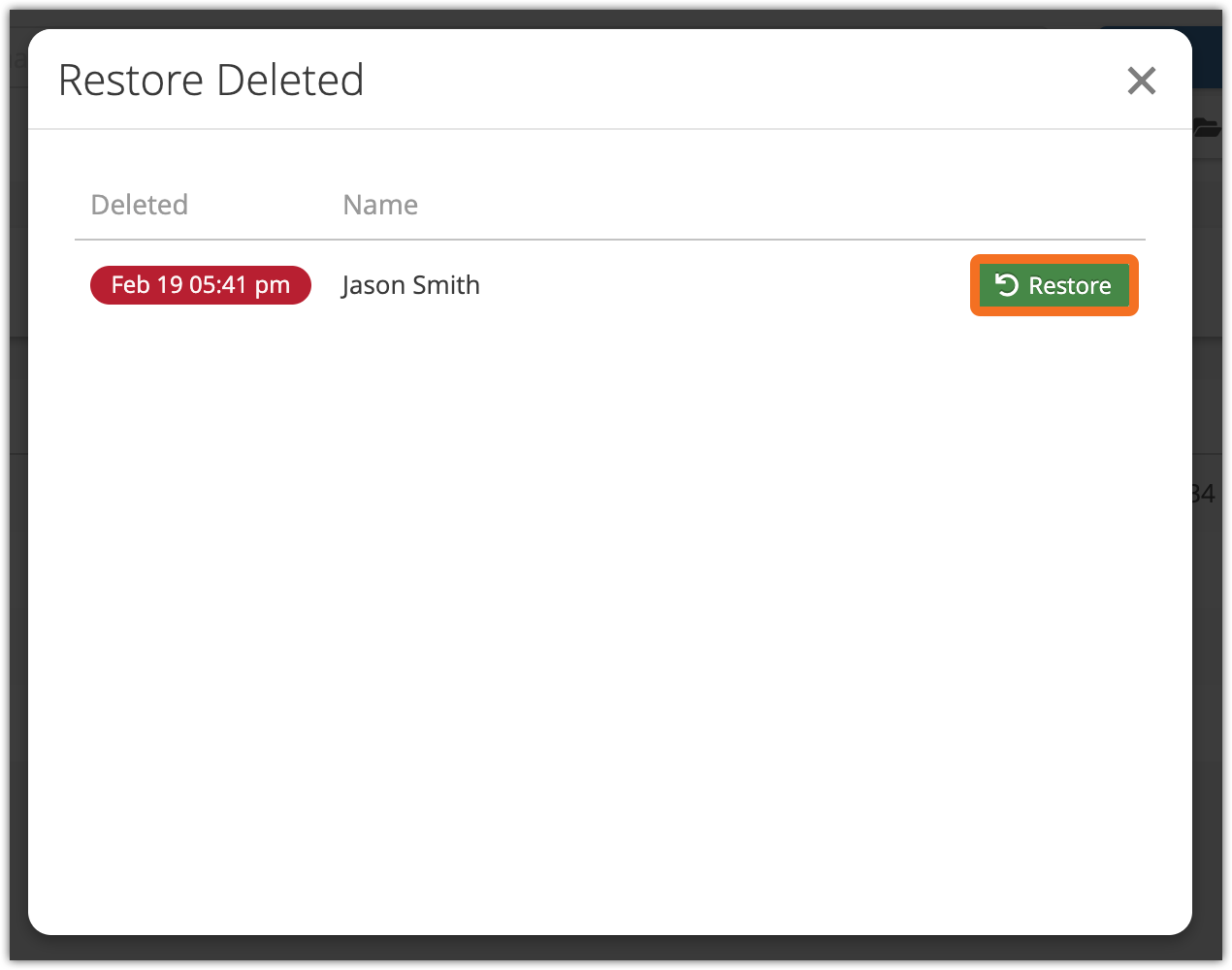 You can restore (or “undelete”) recently deleted contacts, so don’t panic if you or your staff delete something in error.