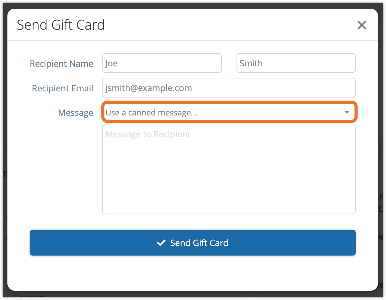 Once you create a canned message, you can use it anywhere you select when making it: when sending gift cards, payment requests, event messages, or review responses.