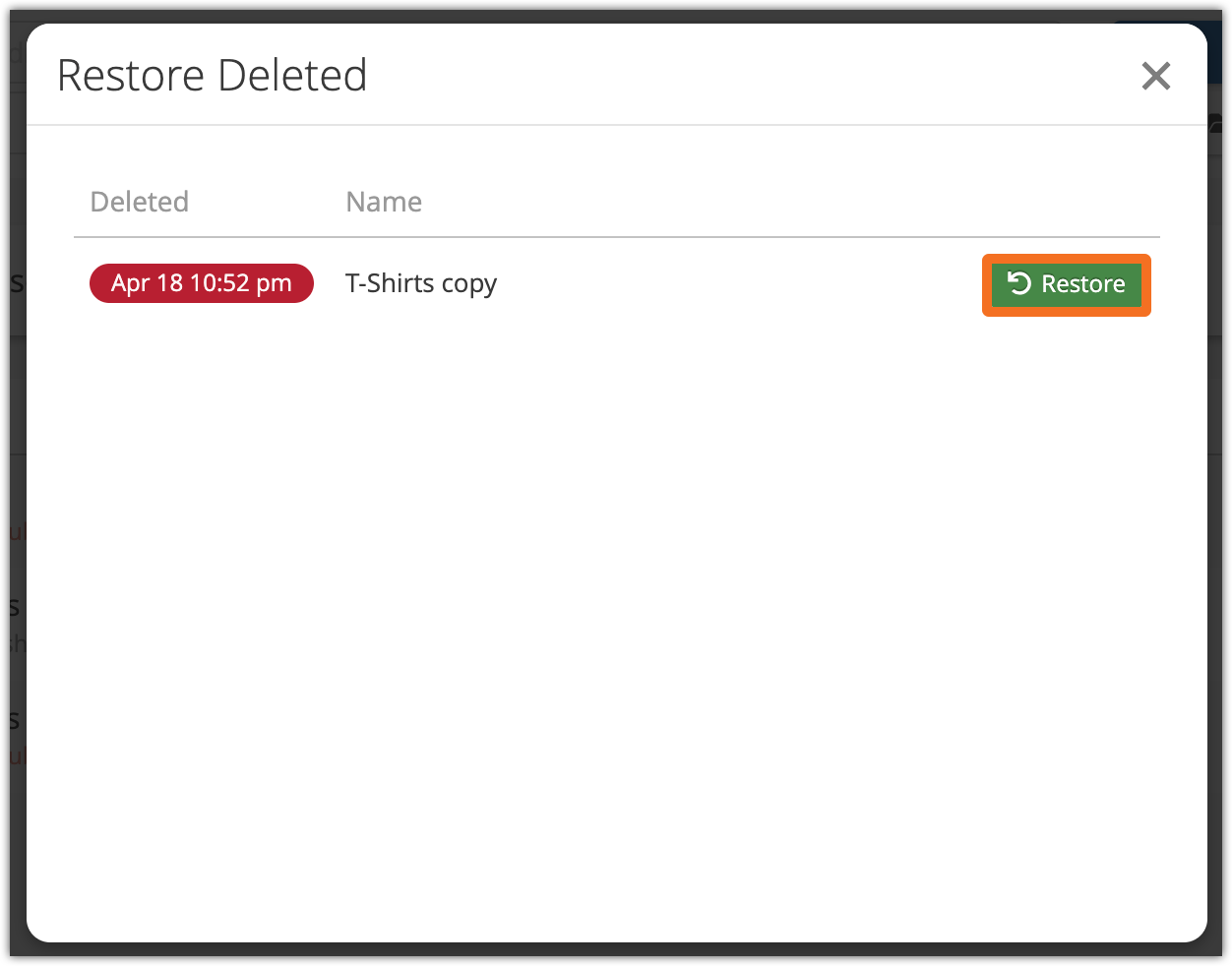 You can restore (or “undelete”) recently deleted merchandise, so don’t panic if you or your staff delete something in error.